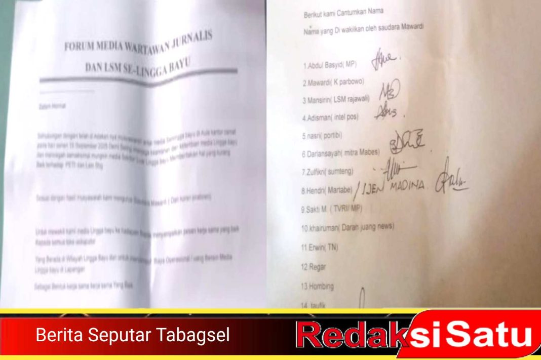 Sesuai tertera di dalam surat yang beredar, Mawardi dari Koran Prabowo menjadi utusan mewakili sejumlah wartawan dan LSM se Kecamatan Lingga Bayu untuk menyampaikan pesan kerjasama kepada semua toke Excavator, sebagai berikut: