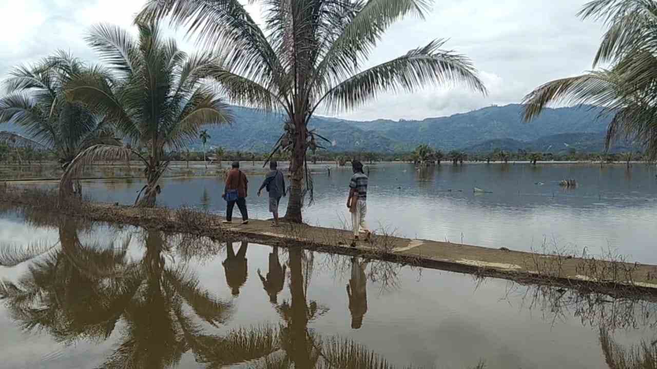 “Sejak banjir bulan November kemarin, sampai hari ini belum surut, dan sejak itu pula kami tidak bisa beraktivitas ke sawah seperti sediakala,” jelasnya.