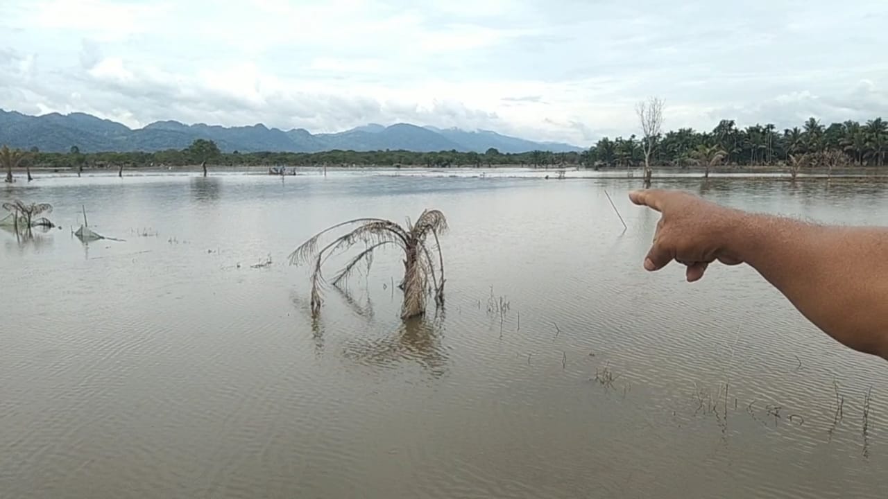 ” Kita sudah dua kali menabur bibit padi dan hasilnya beginilah, tenggelam,” jelasnya.