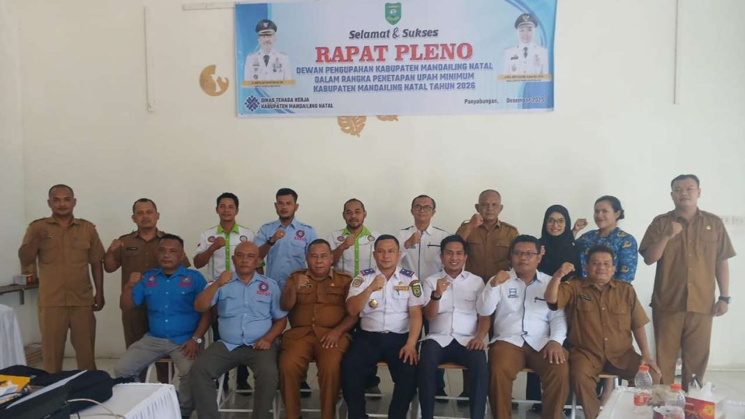 Mandailing Natal, tabagsel.redaksisatu.id – Rapat Pleno Dewan Pengupahan Kabupaten Mandailing Natal berjalan lancar. Agenda tersebut dilaksanakan pada Senin 22 Desember 2025 bertempat di Kelurahan Dalan Lidang dalam rangka penetapan upah minimum para pekerja.