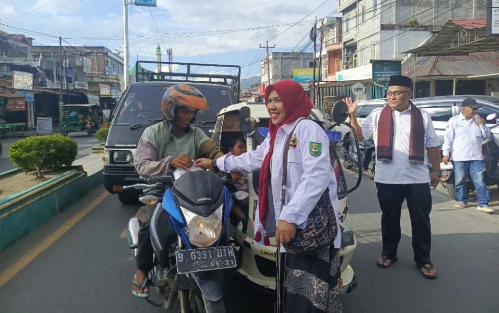 Mandailing Natal, tabagsel.redaksisatu.id – Dewan Pimpinan Daerah Ikatan Keluarga Minangkabau Kabupaten Mandailing Natal (DPD IKM Madina) berbagi takjil kepada para pengguna jalan raya di wilayah Panyabungan, Kabupaten Mandailing Natal. Minggu (15/03/26).