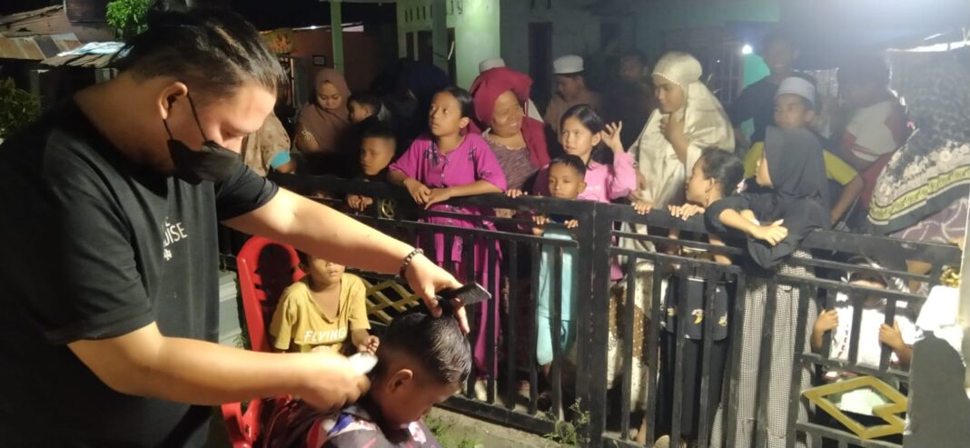 “Kegiatan ini kita laksanakan untuk menyambut hari raya, selain itu agar anak anak dan remaja di desa ini terlihat rapi khususnya mereka yang usia sekolah,” sebutnya.