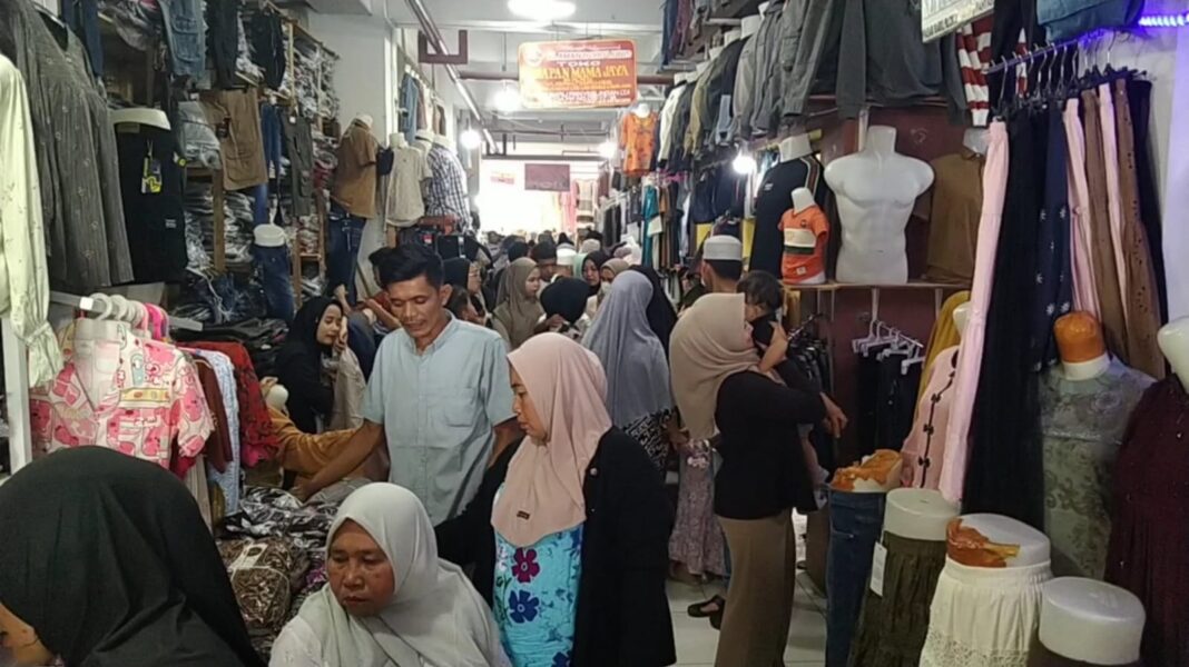 Mandailing Natal, tabagsel.redaksisatu.id – Menjelang lebaran Idul Fitri 1447 Hijiriah, pasar baru Panyabungan ramai pengunjung. Para pengunjung tersebut berbelanja pakaian untuk kebutuhan hari raya.